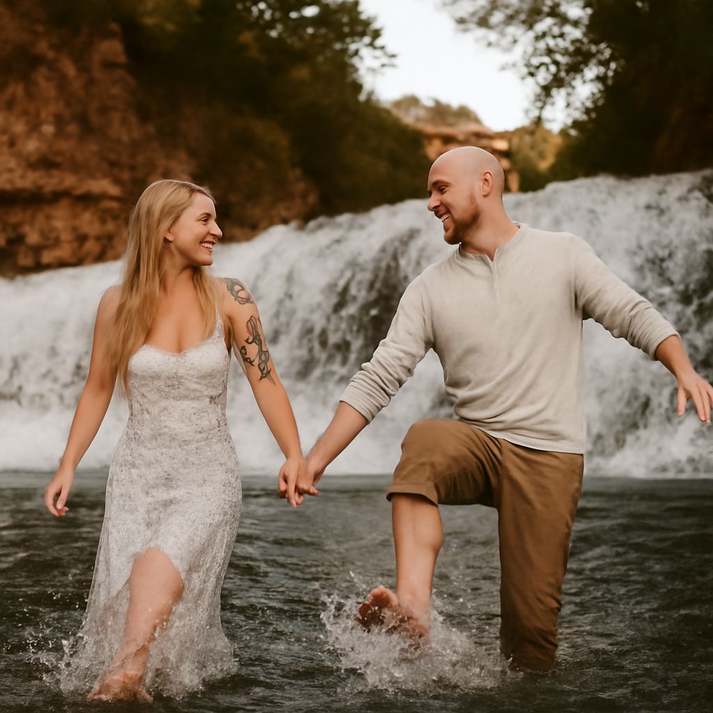 For posing, prioritize genuine movement over static poses — walking away from camera, spinning, laughing mid-sentence. These moments read as authentic rather than posed and make the foliage feel like environment rather than backdrop. The most effective fall engagement photo ideas integrate the couple into the landscape rather than placing them in front of it.